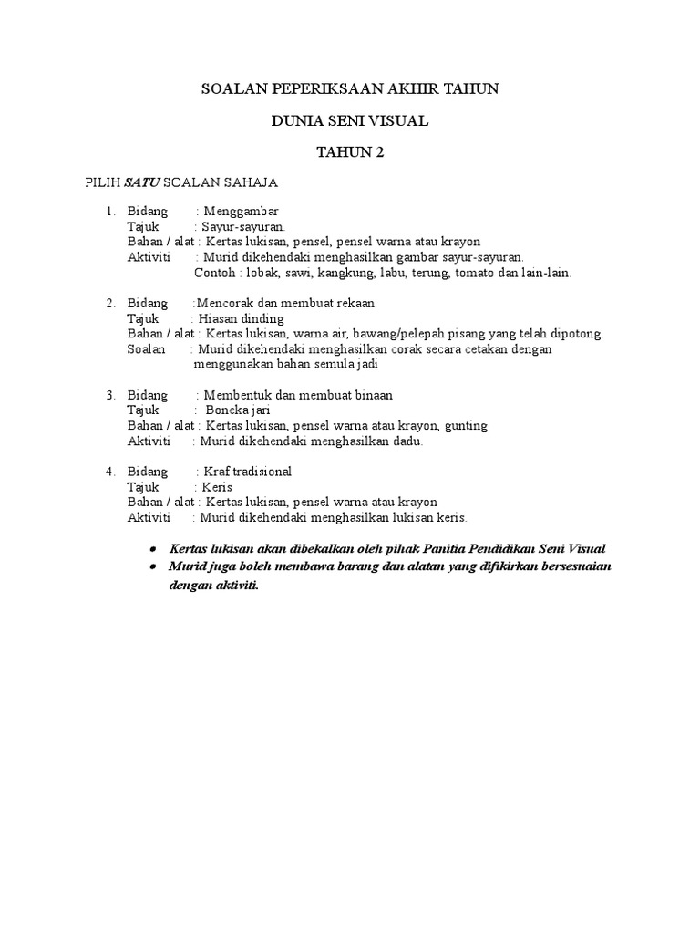 Soalan Peperiksaan Dunia Seni Visual Tahun 2 Kssr Pdf